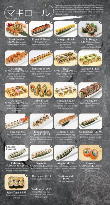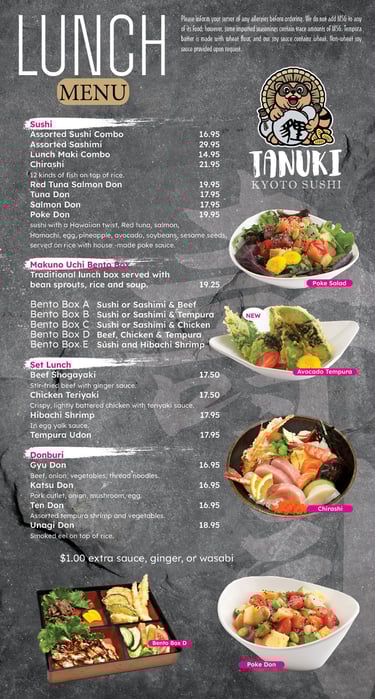 Reserve your table at Tanuki Kyoto Sushi for a fresh, authentic Japanese meal.
